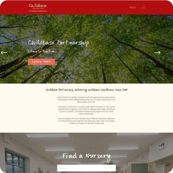 Armadillo crafted a professional and engaging website for Childbase Partnership, built with the latest responsive WordPress technology. Inspired by the nurturing environments of the nurseries themselves, the design features a child-friendly aesthetic with soft fonts, bright colours, and joyful imagery.