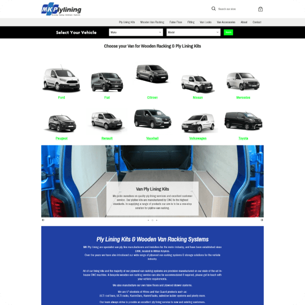 This Shopify-built eCommerce site, developed by armadillo, it features a user-friendly van selector and a modern, easy-to-navigate design. The van selector simplifies finding the right vehicle, while the overall design prioritizes a smooth and intuitive shopping experience.